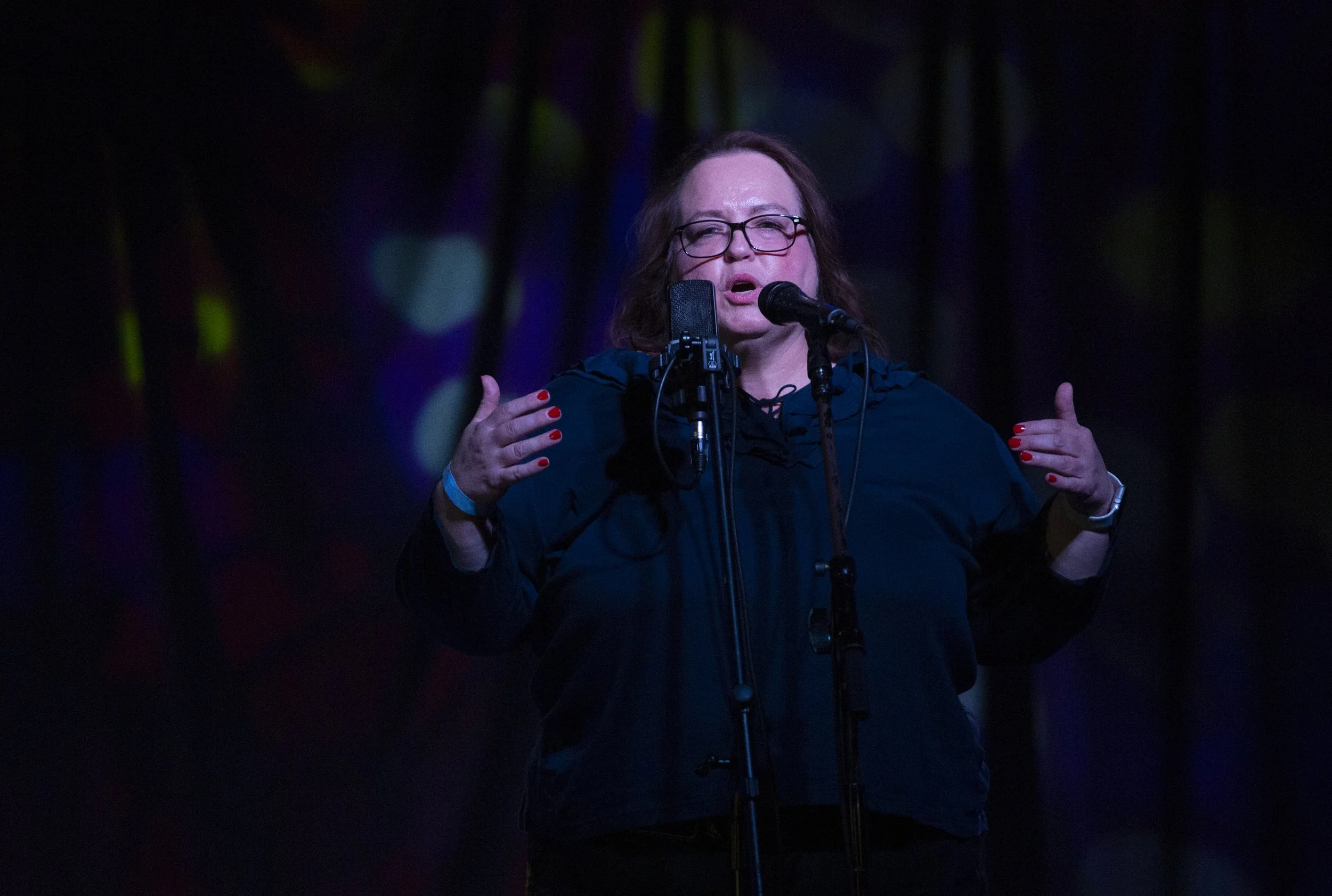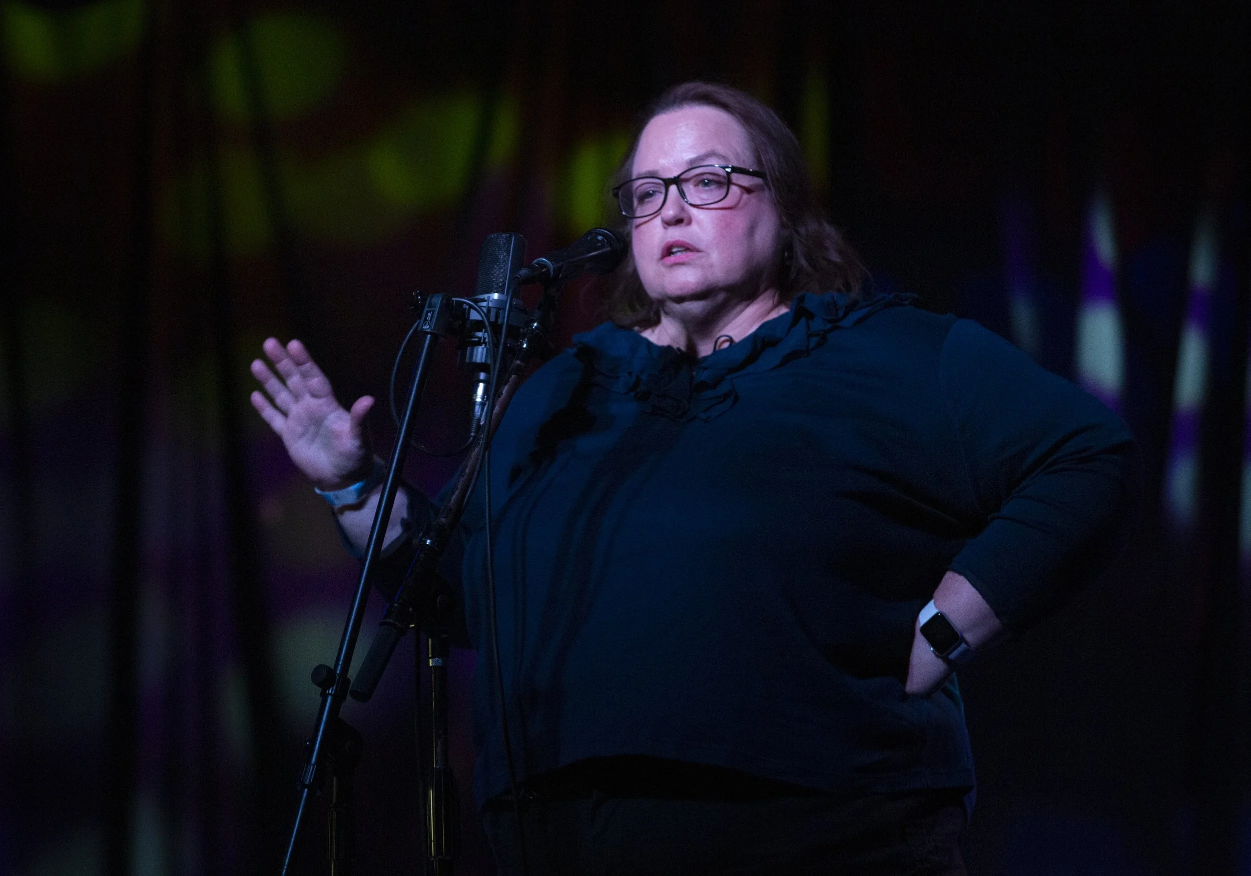 Patricia Schuba shares her story at The Ready Room in St. Louis, MO in July 2019. Photo by David Kovaluk.
