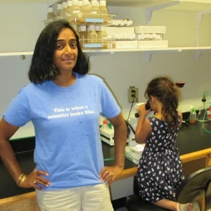Nadia Singh is an Associate Professor of Biological Sciences at North Carolina State University and an Associate Professor of Biology at the University of Oregon. She earned her BA in Biology from Harvard University, her PhD in Biological Sciences at Stanford University, and did a postdoc at Cornell University. Her research focuses on the genetics of evolution, and she relies primarily on fruit flies as a model system. Outside of work, she enjoys running (ok, jogging), cooking (ok, eating), drinking IPAs (no caveat here, it’s a true story), and playing board games with her two daughters (but not Monopoly because that game is awful and she doesn’t want to raise a pair of mercenary capitalists).